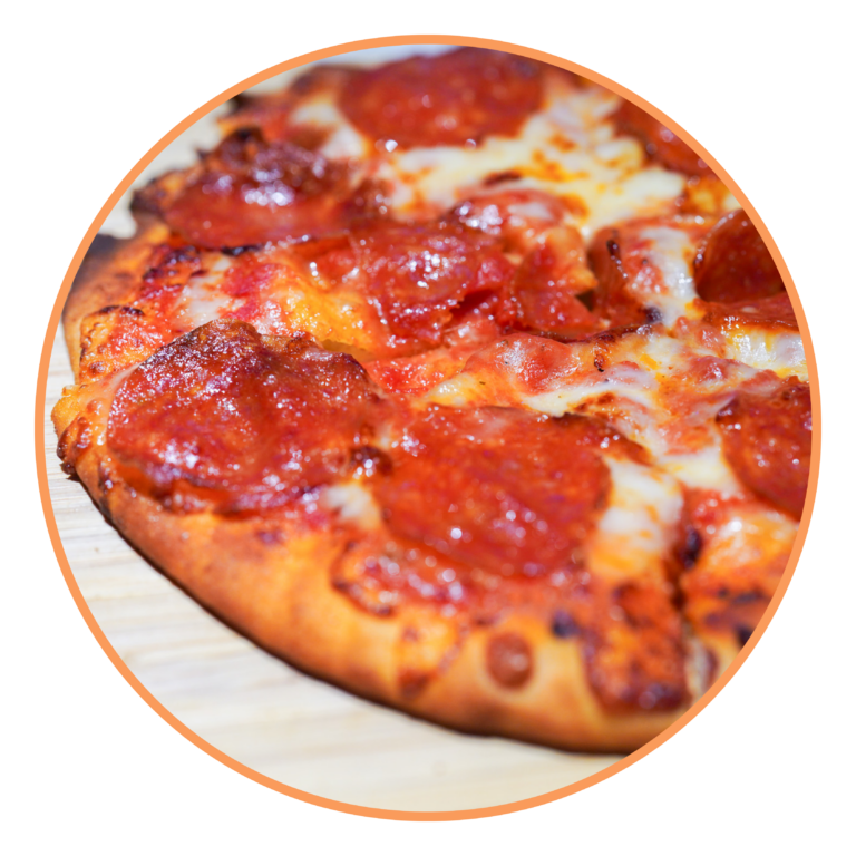 Marinara base topped with pepperoni and mozzarella.
